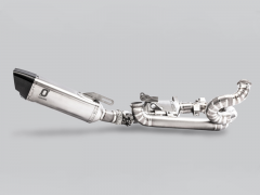 KTM“街头霸王”1290 SUPER DUKE R是KTM家族最顶级的街车车型,也号称最强的街车摩托,外观极侵略性,这款车将运动街车推向新的高度。VANHOOL为1290开发的这款高性能整套排气,插口数据完全和原厂一模一样,我们用最顶尖的排气材质进口钛合金,超轻量化,是原厂排气的三分之一重,声音更加动感带有张力!排气配备了消音塞!可以根据车友的驾驶习惯,拆装消音塞体验不一样的驾驶感受!